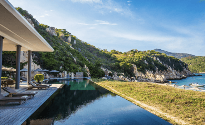 في أمانوي بوسط فيتنام. فبينما يُقدّم هذا الملاذ الفاخر مسبحًا لا متناهيًا آخر على منحدراته، يُبرز المسبح اللامتناهي بطول 50 مترًا في نادي الشاطئ الساحلَ الوعر لنينه ثوان وخليج فينه هاي ببراعة. وتُضفي رؤية الطيور البرية وقوارب الصيد والصخور الضخمة لمسةً من الإثارة على تجربة السباحة هنا، مما يُضفي شعورًا لا يُنسى بالمكان.