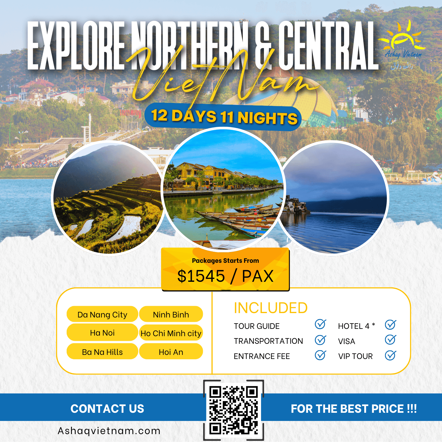 EXPLORE NORTHERN & CENTRAL VIETNAM IN 12 DAYS 11 NIGHTS HN-HL OVERNIGHT-NB-DANANG-HOI AN