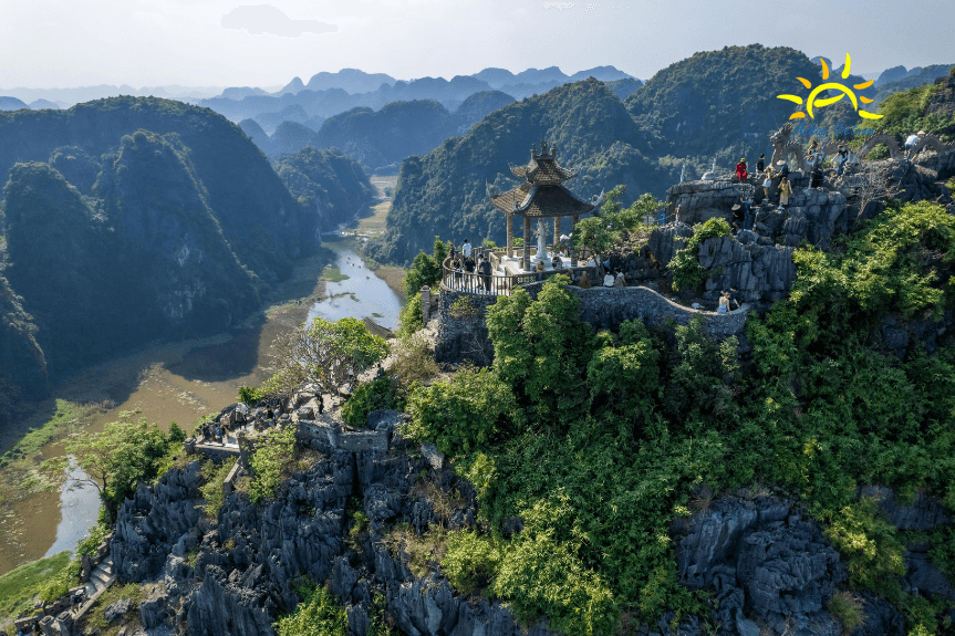 Visit Trang An complex by boat (cross over many caves and temple on the river), Dancing cave (climbing to the peak)"